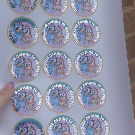 Make your party favours unforgettable with these adorable Bluey “Thanks for Coming to My Party” stickers! Each sticker measures 2 inches and features shiny silver foiled text that catches the light beautifully. Perfect for sealing goodie bags, decorating invitations, or adding a special touch to gifts.