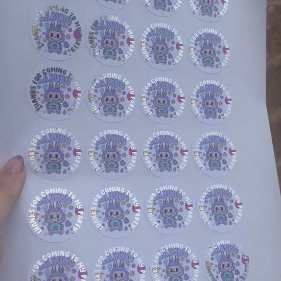 Make your party favours unforgettable with these adorable Labubu “Thanks for Coming to My Party” stickers! Each sticker measures 1.5 inches and features shiny silver foiled text that catches the light beautifully. Perfect for sealing goodie bags, decorating invitations, or adding a special touch to gifts.