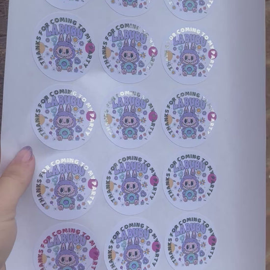 Make your party favours unforgettable with these adorable Labubu “Thanks for Coming to My Party” stickers! Each sticker measures 2 inches and features shiny silver foiled text that catches the light beautifully. Perfect for sealing goodie bags, decorating invitations, or adding a special touch to gifts.