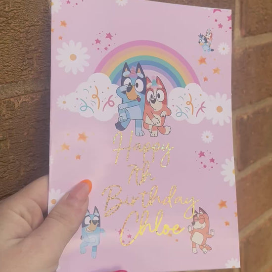 ✨Bluey Birthday Card – 5x7 Inches with Glitter Gold Foil Finish ✨